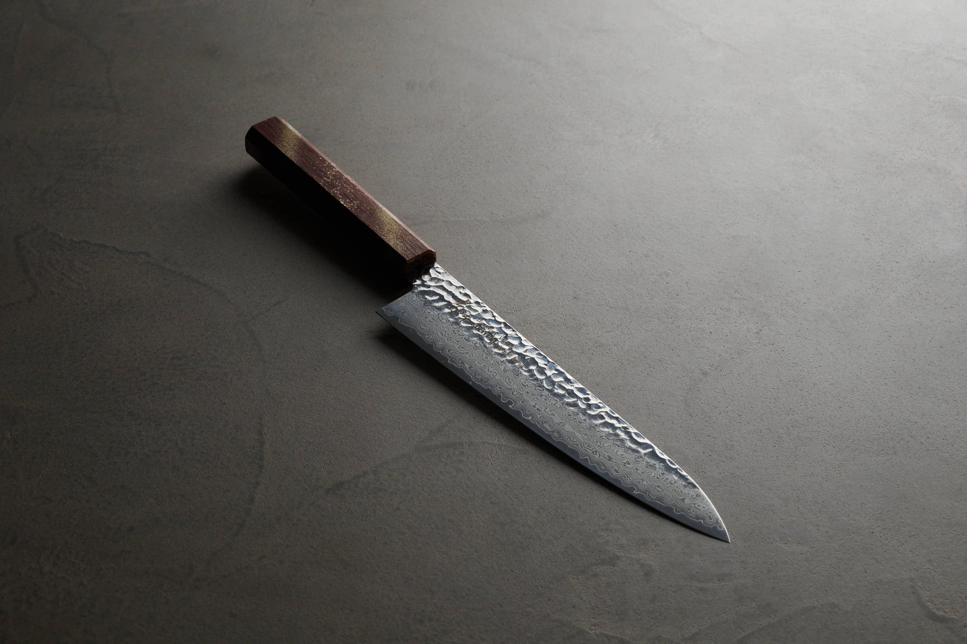「道具にも、美しさと物語を」。 堅牢な樫の強さと、夜空のような静寂な美しさ。使うたびに心が洗われるような、特別な牛刀です。