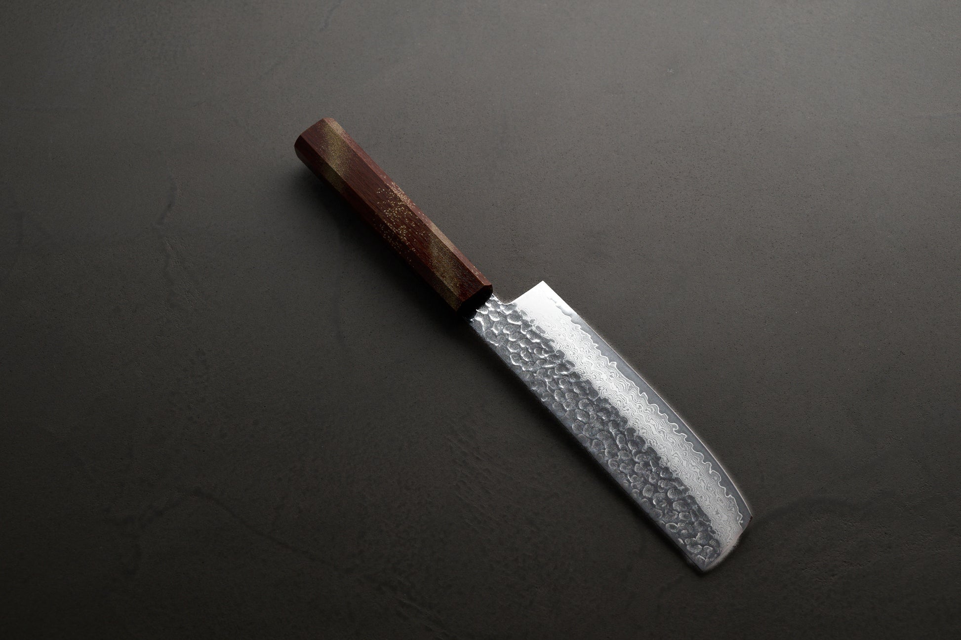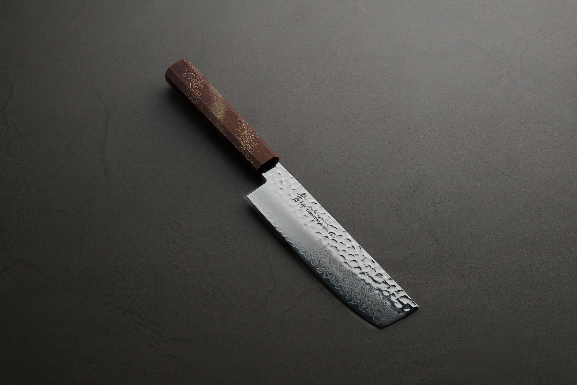 【星空を映す野菜包丁】堺孝行の「33層ダマスカス樫漆」シリーズ 和菜切包丁 160mm