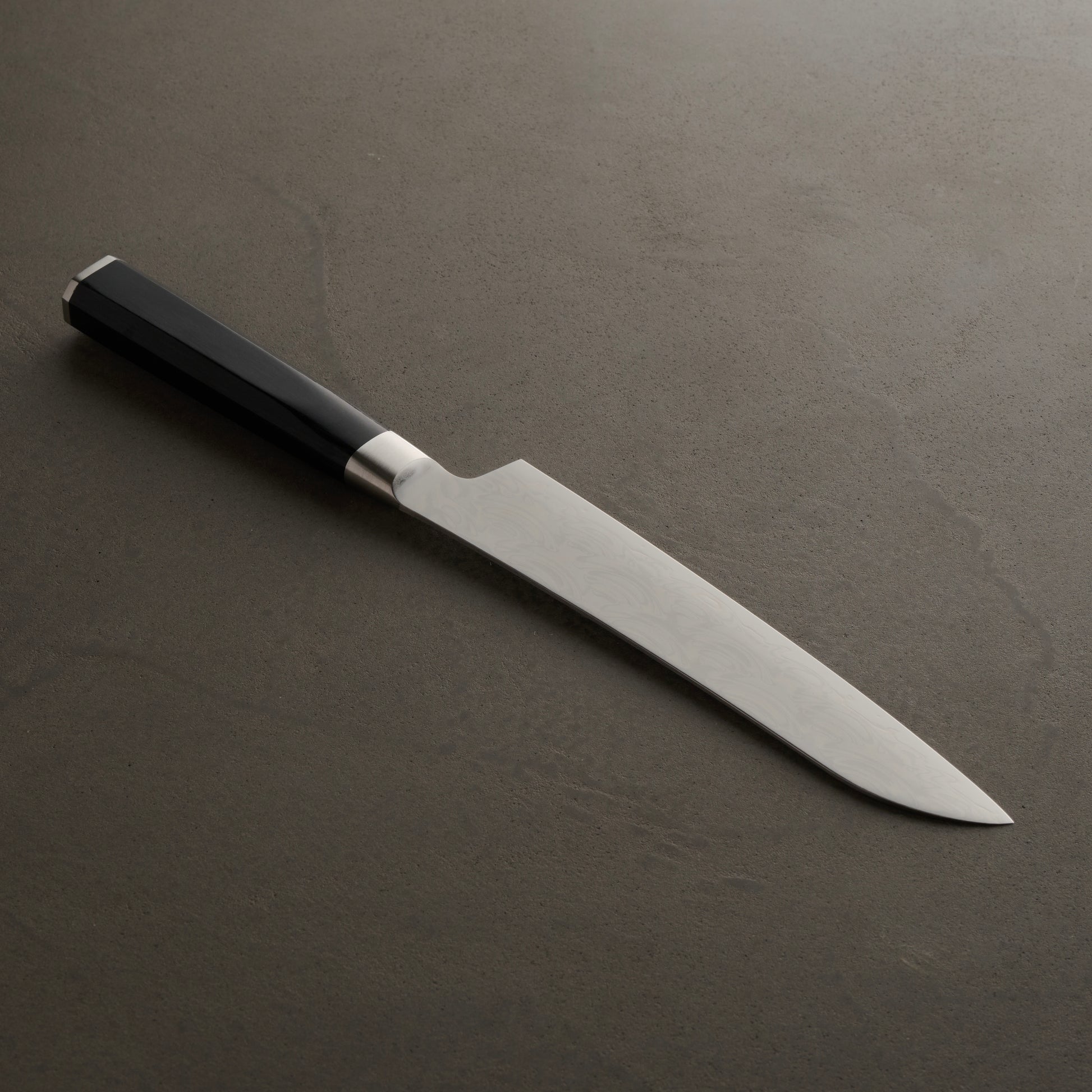 - 切れ味: 「食材の中を包丁が自然に落ちていく」と評される極薄の刃体。刃渡りが長くても食材との摩擦抵抗が極めて少ないため、大きな食材にも吸い込まれるように刃が入り、長時間の調理でも疲れにくいのが特徴です。