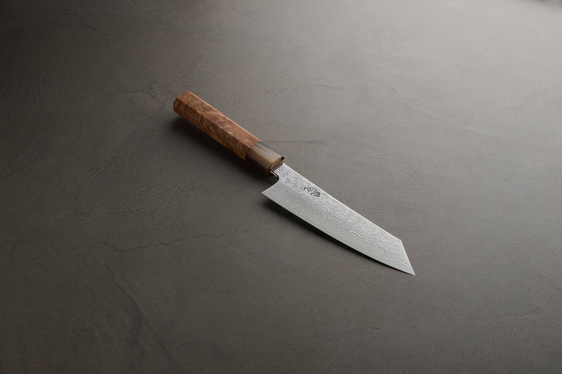 【刀匠の技×銘木の美】猿九の焔雲シリーズの三徳包丁 165mm
