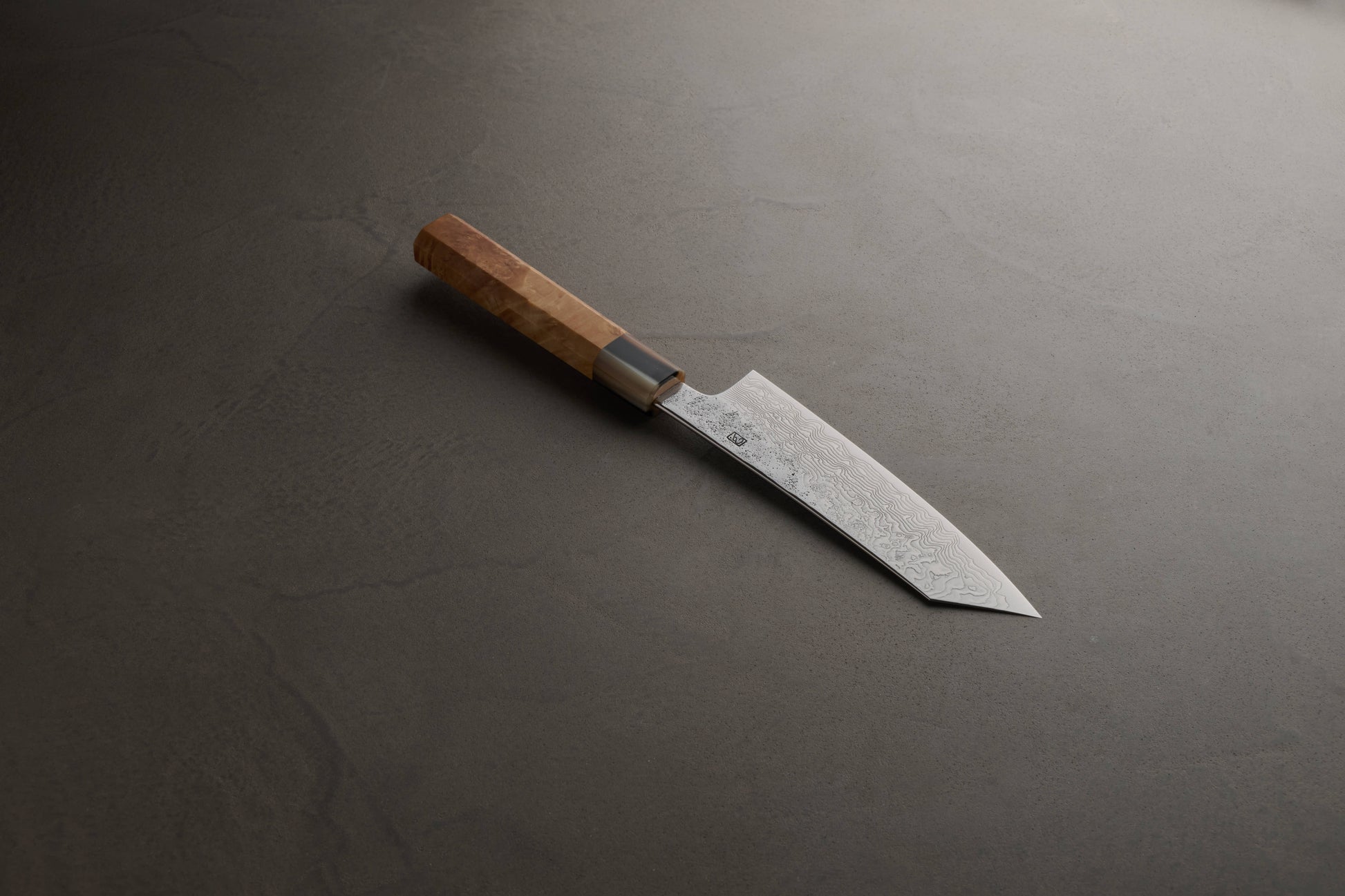 - 素材(刃): 芯材には「SPG2(スーパーゴールド2)」を採用。最高級の粉末ハイス鋼で、カミソリのような鋭い切れ味と、長期間研がなくても切れ止まない驚異的な持続性を誇ります。錆にも強いため、実用性も申し分ありません。