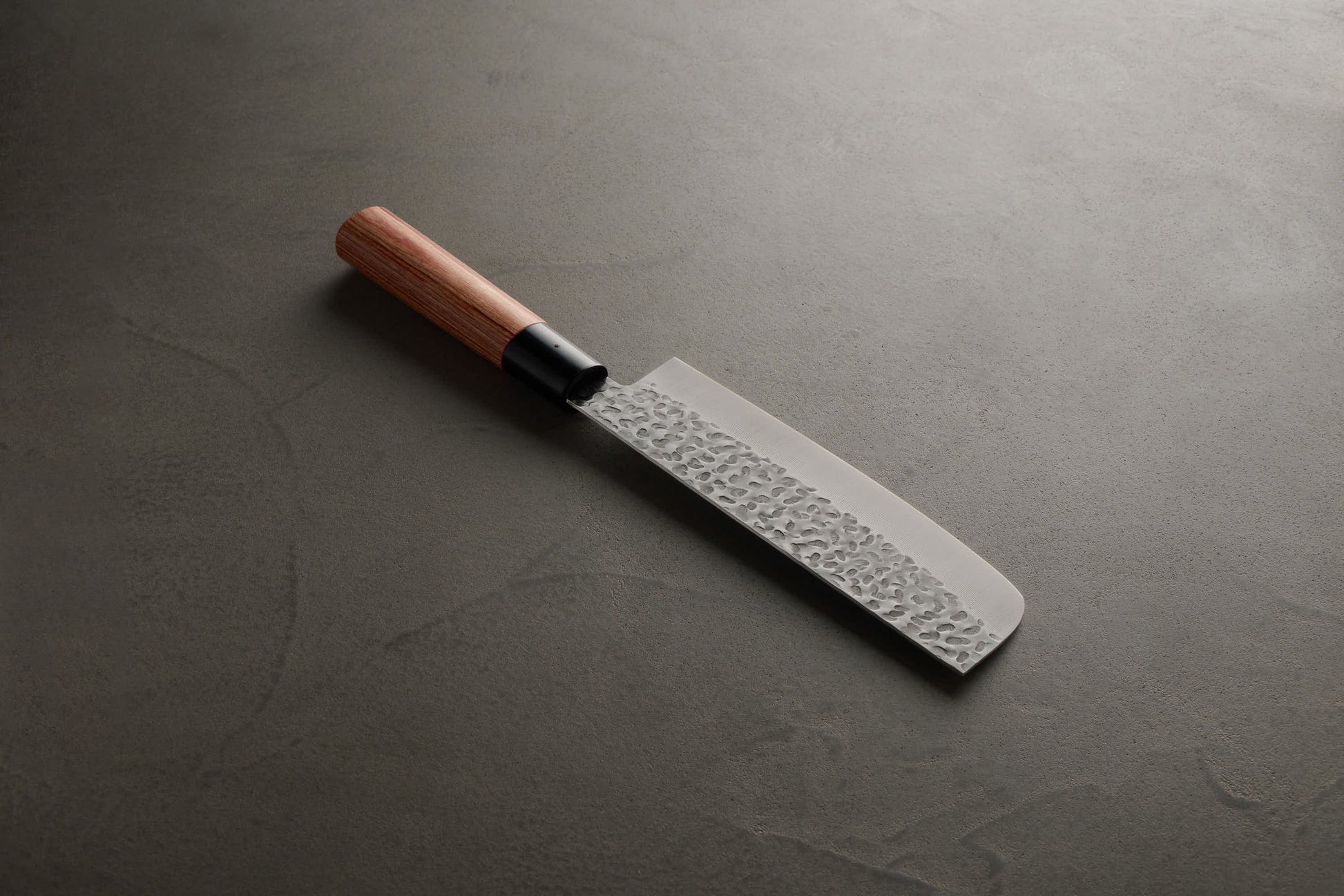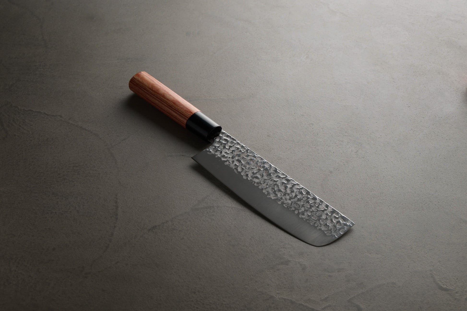 - 柄: 耐水性に優れた「赤合板(あかごうはん)」を使用。日本刀のように手に馴染む和式の「丸柄」形状で、鮮やかな赤色がキッチンのアクセントになります。